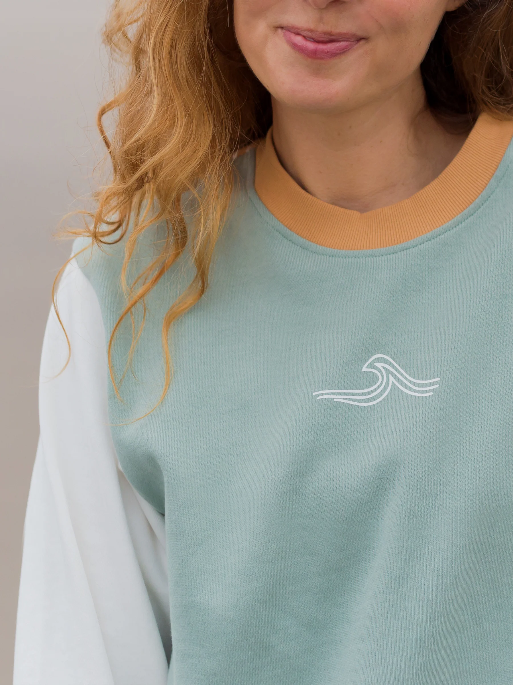 • Seafoam green body, Cloud white sleeves